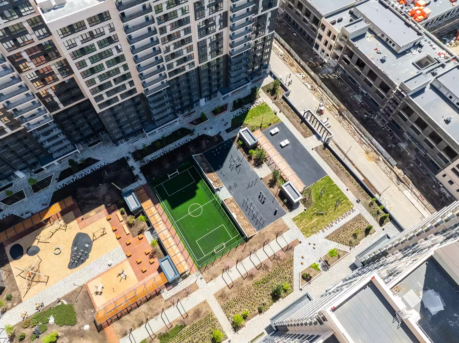 За счет архитектурного решения URAL образует собственную закрытую территорию с зонами для отдыха, прогулок, спорта и игр с детьми. За безопасность отвечают радиоуправляемый шлагбаум и круглосуточное видеонаблюдение. В комплексе предусмотрен просторный подземный паркинг более чем на 800 автомобилей.