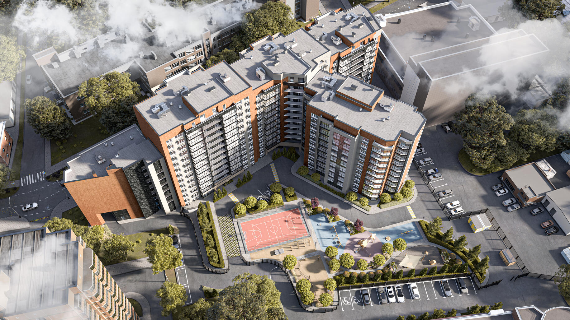 В шаговой доступности находится спортивный клуб «Баскет-Холл» — яркая точка притяжения для всех горожан! Жители смогут водить детей на спортивные секции рядом с домом и посещать баскетбольные матчи.